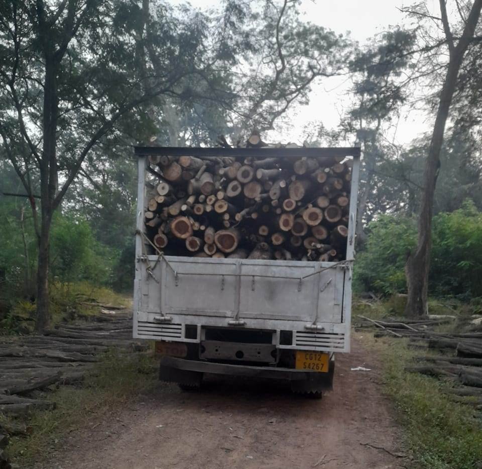 *रायगढ़ वन विभाग की बड़ी कार्रवाईः लकड़ी के अवैध परिवहन में दो वाहन जब्त*