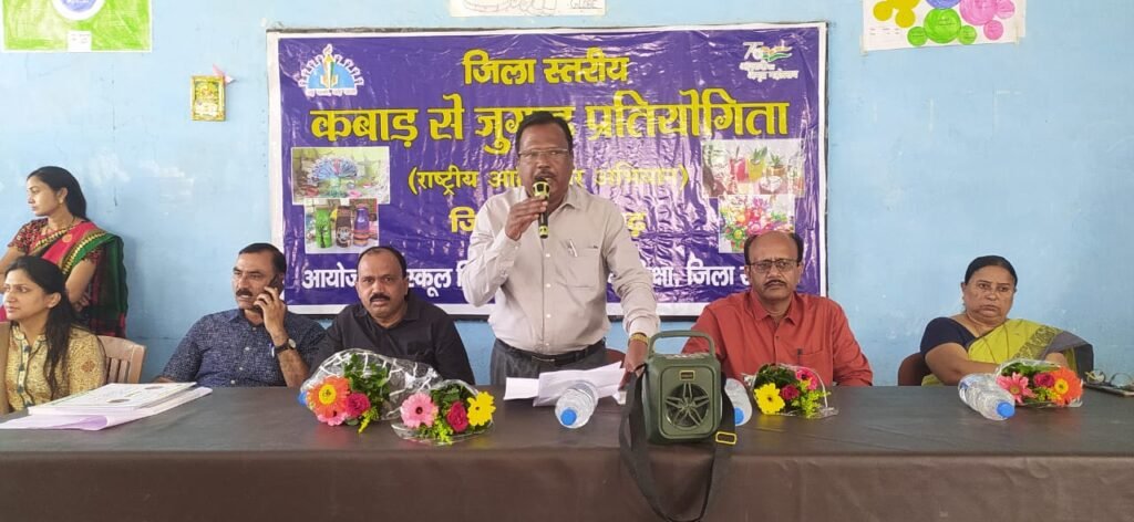 रायगढ़, 10 नवम्बर 2022/ राज्य परियोजना कार्यालय समग्र शिक्षा रायपुर छत्तीसगढ़ के निर्देशानुसार राष्ट्रीय आविष्कार अभियान के अंतर्गत कबाड़ से जुगाड़ मेले का जिला स्तरीय आयोजन आयोजन किया गया। उक्त आयोजन जिला मुख्यालय रायगढ़ के शासकीय नटवर अंग्रेजी माध्यम स्कूल के सभाकक्ष में जिला शिक्षा अधिकारी श्री बी.बाखला, जिला मिशन समन्वयक समग्र शिक्षा श्री नरेंद्र चौधरी के मार्गदर्शन एवं कबाड़ से जुगाड़ के जिला नोडल अधिकारी श्री आलोक स्वर्णकार के निर्देशन तथा जिला विज्ञान कार्यक्रम प्रभारी श्री शशिकांत बाथम के निर्देशन में आयोजित किया गया। उक्त