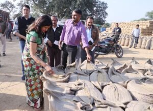 कलेक्टर श्रीमती रानू साहू ने पहले कोड़ातराई केंद्र का निरीक्षण किया। यहां उन्होंने अब तक हुई खरीदी के साथ उठाव के बारे में जानकारी ली। कलेक्टर श्रीमती साहू ने जारी डीओ के अनुसार तेजी से धान का उठाव करवाने के निर्देश खाद्य अधिकारी को दिए। इस दौरान उन्होंने खरीदी केंद्रों में अन्य व्यवस्थाओं का जायजा लिया। केंद्र में बारदाने के बारे में भी जानकारी ली। समिति प्रबंधक ने बताया कि बारदाने पर्याप्त मात्रा में उपलब्ध है। कलेक्टर श्रीमती साहू ने खरीदे गए धान के लॉट में से मॉइश्चर मीटर से नमी भी नपवाई। उन्होंने निर्देश देते हुए कहा कि धान के लिए निर्धारित नमी के भीतर का ही धान खरीदना है। उन्होंने किसानों से चर्चा कर खरीदी केंद्र में बंदोबस्त के बारे में भी जानकारी ली। गांव के किसान श्री विजय पटेल ने बताया कि वे अपना धान बेच चुके हैं। कलेक्टर श्रीमती रानू साहू ने तिलगी खरीदी केंद्र का भी निरीक्षण किया। यहां पर लक्ष्य के अनुसार खरीदी, उठाव व भुगतान के बारे में जानकारी ली। किसान कन्हैया लाल चौधरी ने बताया कि खरीदी के 4-6 दिनों में भुगतान मिल जा रहा है।