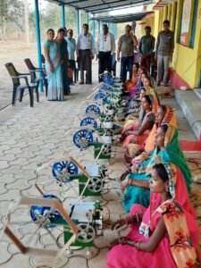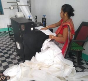 सेनेटरी पैड तैयार कर रही समूह की महिलाएं