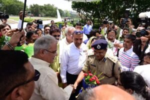 - मुख्यमंत्री भूपेश बघेल रायगढ़ जिले के जिंदल एयर स्ट्रिप पहुंचे