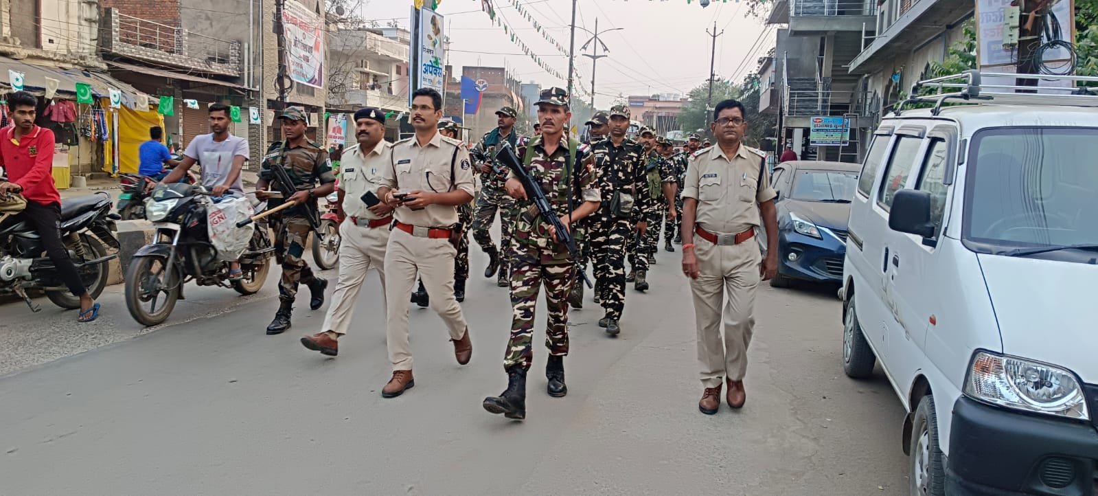 स्थैतिक निगरानी दल (SST Team) और पैरामिलिट्री फोर्स के जवानों द्वारा वाहनों की सघन जांच पड़ताल की जा रही है, जिले में प्रवेश के अंदरूनी मार्गों पर भी पुलिस के जवान पेट्रोलिंग कर निगाह रखे हुए हैं । चुनाव के लिए जिले में 27 कंपनी अर्द्ध सैनिक बलों की आ चुकी है जिन्हें विभिन्न थानाक्षेत्र में रूकवाया गया है । जिले में उपलब्ध अर्द्ध सैनिक बलों के साथ सभी थाना क्षेत्रों में स्थानीय पुलिस बल एरिया डोमिनेंस के साथ जांच का दायरा बढ़ाया गया है । प्रतिदिन फुट पेट्रोलिंग और फ्लैग मार्च कर पुलिस बल सभी प्रकार की गतिविधियों पर निगाह रखे हुए है । किसी भी प्रकार के व्यवधान पैदा करने वालों के खिलाफ सख्त एक्शन लिया जाएगा ।