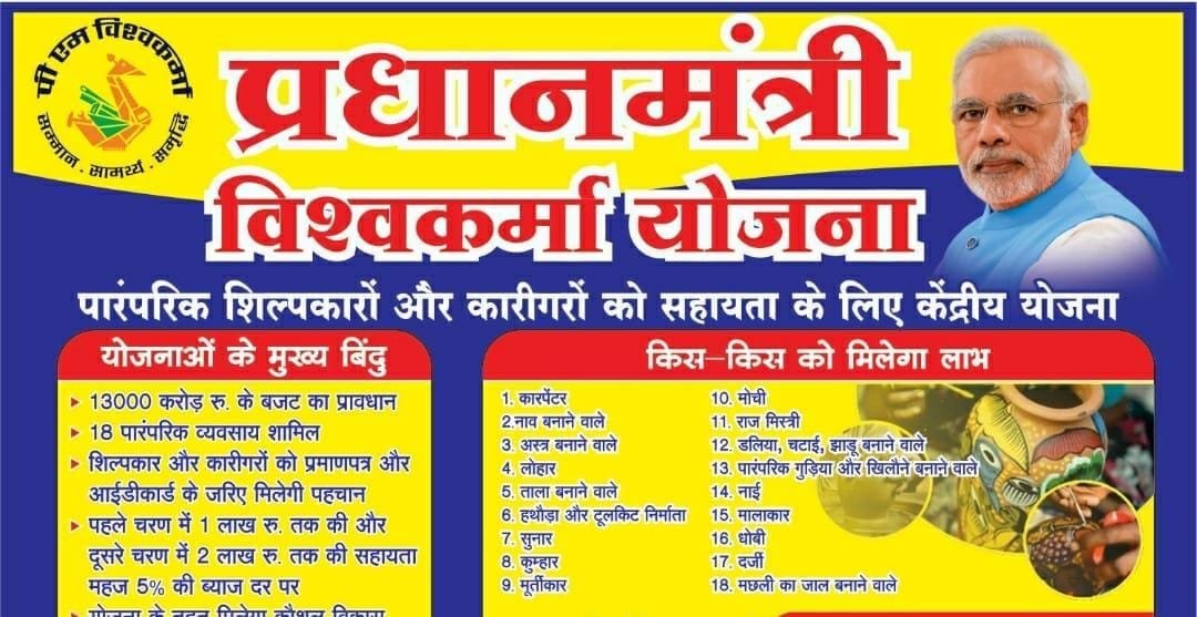 प्रधानमंत्री विश्वकर्मा योजना में मोची,मिस्त्री,लोहार, नाई,कुम्हार जैसे 18 बुनियादी क्षेत्रों में कार्य करने वालों को मिलेगा लाभ…