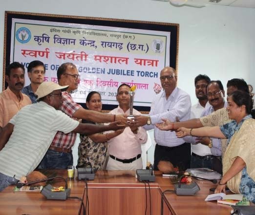 रायगढ़, 5 सितम्बर 2024/ भारतीय कृषि अनुसंधान संस्थान अंतर्गत कार्यरत कृषि विज्ञान केन्द्रों के स्वर्ण जयंती वर्ष के अवसर पर इंदिरा गांधी कृषि विश्वविद्यालय के कुलपति कर्नल डॉ.गिरीश चंदेल के निर्देशानुसार एवं निदेशक विस्तार सेवाएं डॉ.एस.एस.टुटेजा के मार्गदर्शन में पूरे छत्तीसगढ़ के कृषि विज्ञान केन्द्रों में स्वर्ण जयंती मशाल यात्रा का कार्यक्रम चलाया जा रहा है। इस स्वर्ण जयंती यात्रा के पड़ाव में कृषि विज्ञान केन्द्र रायगढ़ में आयोजित कार्यक्रम में डॉ.बी.एस.राजपूत, वरिष्ठ वैज्ञानिक एवं प्रमुख कृषि विज्ञान केन्द्र रायगढ़ के द्वारा कार्यक्रम की भूमिका एवं कृषि विज्ञान केन्द्र की किसानों एवं अधिकारियों के बीच तकनीकी जानकारी के आदान प्रदान एवं आर्थिक उन्नति में महत्ता के संबंध में विस्तार से जानकारी दी गई।