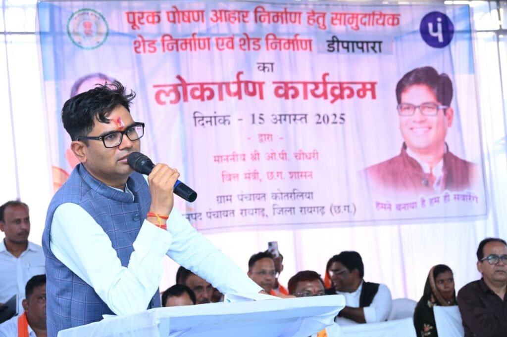 रायगढ़, 15 अगस्त 2025/ वित्त मंत्री श्री ओ.पी.चौधरी ने रायगढ़ विकासखंड के ग्राम पंचायत कोतरलिया में 17 लाख रुपये की लागत से निर्मित सामुदायिक शेड का लोकार्पण किया। यह शेड महिला स्व-सहायता समूहों द्वारा पूरक पोषण आहार के निर्माण के लिए समर्पित है, जिससे आंगनबाड़ी केंद्रों को उच्च गुणवत्ता वाला पोषण आहार उपलब्ध कराया जाएगा। वित्त मंत्री श्री चौधरी ने शेड का विधिवत उद्घाटन कर महिला समूहों को बधाई दी और निर्माण कार्य में योगदान देने वाले युवाओं को उपहार भेंट किए। उन्होंने पोषण आहार निर्माण मशीनों का निरीक्षण किया और स्वयं मशीन चलाकर प्रक्रिया की जानकारी ली।