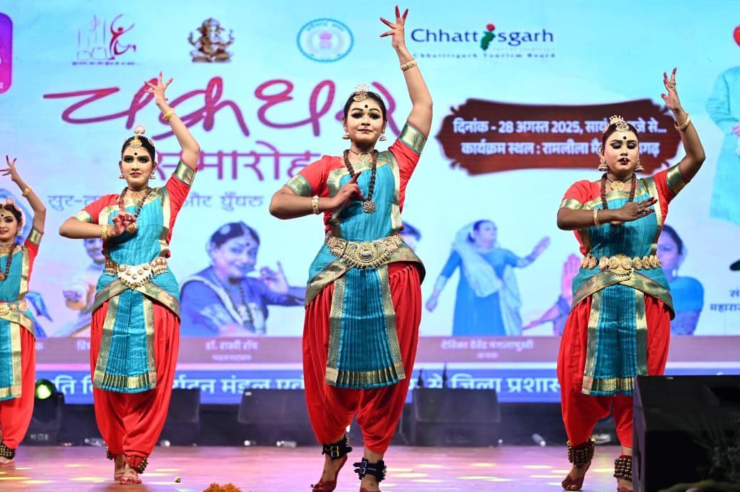 अगस्त 2025/ अंतरराष्ट्रीय ख्याति प्राप्त चक्रधर समारोह के दूसरे दिन छत्तीसगढ़ी कलाकारों ने अपनी मनमोहक प्रस्तुतियों से दर्शकों का दिल जीत लिया। लोकगीत, लोकनृत्य और शास्त्रीय संगीत में दर्शकगण छत्तीसगढ़ी कला-संस्कृति की अनूठी छटा में सराबोर हो गए। कार्यक्रम में छत्तीसगढ़ के नर्तक-नर्तकियों ने परंपरागत वेशभूषा में क्षेत्र की समृद्ध सांस्कृतिक धरोहर को जीवंत कर दिया। इसके बाद लोकगायकों ने पारंपरिक गीतों की ऐसी प्रस्तुति दी कि पंडाल तालियों की गडग़ड़ाहट से गूंज उठा। शास्त्रीय और लोक संगीत के मेल से सजी प्रस्तुतियों ने समारोह में विशेष रंग भर दिया।