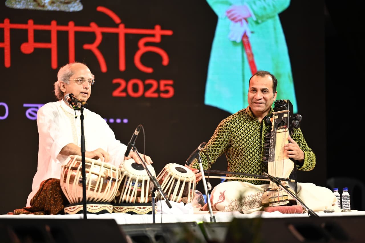 रायगढ़, 29 अगस्त 2025/ अंतरराष्ट्रीय ख्याति प्राप्त चक्रधर समारोह में दिल्ली से आए देश के सुप्रसिद्ध तबला वादक पंडित योगेश शम्सी और उनके साथी कलाकार की सारंगी की जुगलबंदी ने दर्शकों को मंत्रमुग्ध कर दिया।