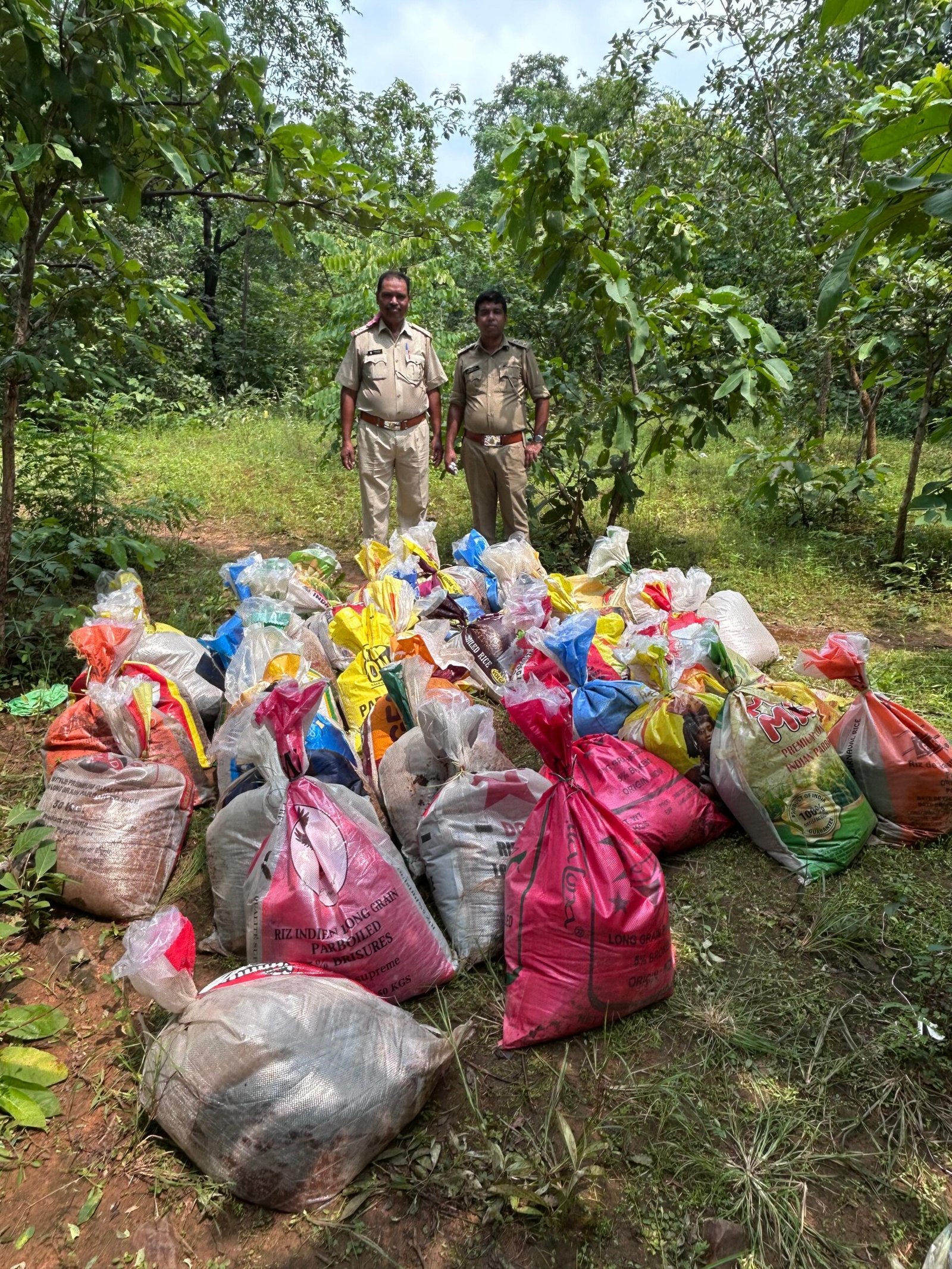 विभिन्न जगहों पर छिपा कर रखे लगभग 145 बोरियो में भरा महुआ शराब बनाने के लिए महुआ लाहन जिसकी कुल मात्रा लगभग 4350 किलोग्राम का कब्जा आबकारी अधिकारी द्वारा लिया गया एवम विधिवत रूप से महुआ लाहन का नष्टीकरण किया गया।