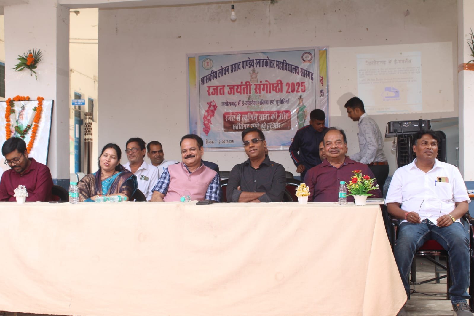 सारंगढ़ बिलाईगढ़, 12 सितंबर 2025/छत्तीसगढ़ राज्य स्थापना उत्सव पर्व पर सारंगढ़ के शासकीय पंडित लोचन प्रसाद पांडेय काॅलेज में ‘‘छत्तीसगढ़ में ई-गवर्नेंस भविष्य एवं चुनौतियां’’ विषय पर रजत जयंती संगोष्ठी का आयोजन किया गया। इस समारोह मेें अतिथि के रूप में कलेक्टर डाॅ. संजय कन्नौजे, विधायक उत्तरी जांगड़े,