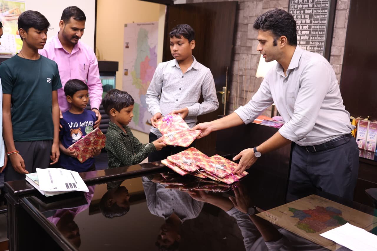 रायगढ़, 15 सितम्बर 2025/ कलेक्टर श्री मयंक चतुर्वेदी से आज जिला कलेक्टोरेट में पीएम केयर्स फॉर चिल्ड्रन योजना से लाभान्वित बच्चों ने सौजन्य मुलाकात की। इस दौरान कलेक्टर ने बच्चों से आत्मीय संवाद स्थापित कर उनकी पढ़ाई, स्वास्थ्य और करियर की तैयारी के बारे में जानकारी ली। उन्होंने बच्चों को उपहार भेंटकर उनका उत्साहवर्धन किया और उन्हें आगे बढऩे के लिए प्रेरित किया। कलेक्टर श्री चतुर्वेदी ने योजना के अंतर्गत बच्चों को दी जा रही सुविधाओं की जानकारी प्राप्त की और उन्हें हरसंभव सहयोग का भरोसा दिलाया। उन्होंने 12वीं कक्षा के विद्यार्थियों के लिए कैरियर मार्गदर्शन हेतु अधिकारियों को आवश्यक निर्देश दिए, ताकि वे उच्च शिक्षा एवं प्रतिस्पर्धी परीक्षाओं की तैयारी प्रभावी ढंग से कर सकें।