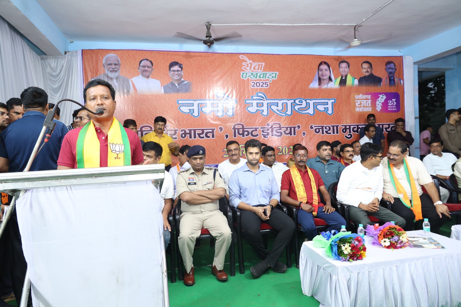 लोकसभा सांसद श्री राधेश्याम राठिया ने कहा कि 17 सितंबर से 02 अक्टूबर तक हम सेवा पखवाड़ा मना रहे हैं। जिसके तहत यह मैराथन दौड़ का आयोजन आज रायगढ़ में आयोजित हुआ। इसका उद्देश्य युवाओं को जीवन में सकारात्मकता के साथ आगे बढऩे के लिए फिट इंडिया और नशामुक्त भारत का संदेश देना है। महापौर श्री जीवर्धन चौहान ने कहा कि यह नमो मैराथन दौड़ युवाओं के प्रयास और सहभागिता से संपन्न हुआ है। युवा देश में भविष्य हैं।