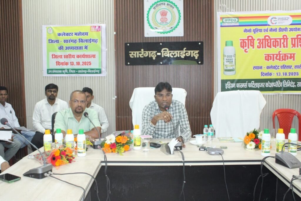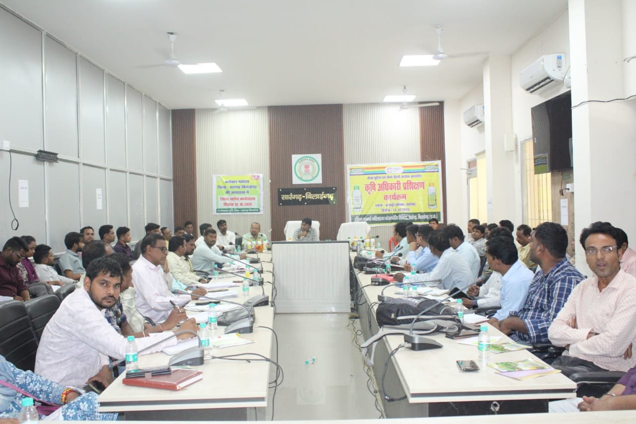 सारंगढ़ बिलाईगढ़, 14 अक्टूबर 2025/ कृषि कार्यशाला सह प्रशिक्षण कलेक्टर सभाकक्ष सारंगढ़ में आयोजित किया गया। इस समीक्षा बैठक में प्रकाश सर्वे अपर कलेक्टर, मधु गबेल डिप्टी कलेक्टर, आशुतोष श्रीवास्तव उप संचालक, दिनेश गाँधी स्टेट हेड इफको कंपनी, भूपेंद्र पाटीदार जिला प्रतिनिधि, शारदा पैकरा बीज निगम प्रक्रिया प्रभारी वरिष्ठ कृषि विकास अधिकारी, सारंगढ़, बिलाईगढ़ एवं बरमकेला के कृषि विकास अधिकारी एवं समस्त ग्रामीण कृषि विकास अधिकारी उपस्थित हुए। इस कार्यशाला सह प्रशिक्षण में दिनेश गाँधी द्वारा नैनो यूरिया एवं नैनो डीएपी के उपयोग एवं महत्त्व के विषय प्रशिक्षण दिया गया। प्रधानमंत्री किसान सम्मान निधि, एग्रीस्टेक पोर्टल में कृषक पंजीयन, धान खरीदी कृषकों कैरी फारवर्ड, वन पट्टाधारी कृषकों के सत्यापन, ग्रीष्मकालीन धान का रकबा कम कर दलहन तिलहन एवं अन्य उद्यानिक फसले बोने की रणनीति, बीज उत्पादन कार्यक्रम, फसल कटाई प्रयोग एवं अन्य समसामयिक विषयों पर प्रकाश सर्वे अपर कलेक्टर द्वारा समीक्षा लिया गया।