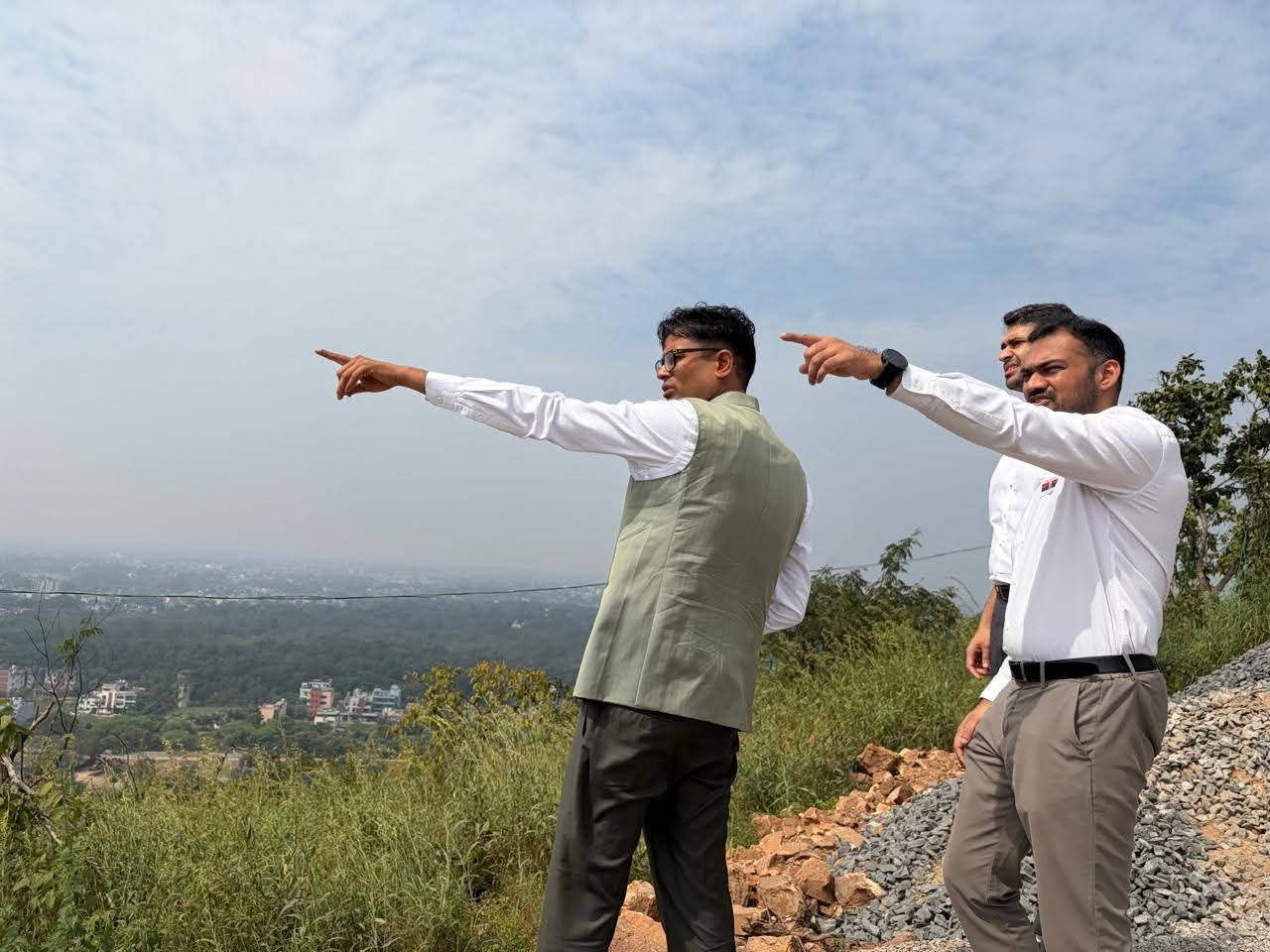 रायगढ़, 22 अक्टूबर 2025/ रायगढ़ के गजमार पहाड़ स्थित प्रसिद्ध हनुमान मंदिर परिसर में जारी सौंदर्यीकरण एवं अन्य विकास कार्यों का प्रदेश के वित्त मंत्री ओ.पी.चौधरी ने निरीक्षण किया। इस दौरान उन्होंने निर्माण कार्यों की प्रगति की विस्तृत समीक्षा की और संबंधित अधिकारियों को आवश्यक दिशा-निर्देश भी दिए। इस अवसर पर कलेक्टर मयंक चतुर्वेदी एवं डीएफओ रायगढ़ श्री अरविंद पी.एम.उपस्थित रहे।