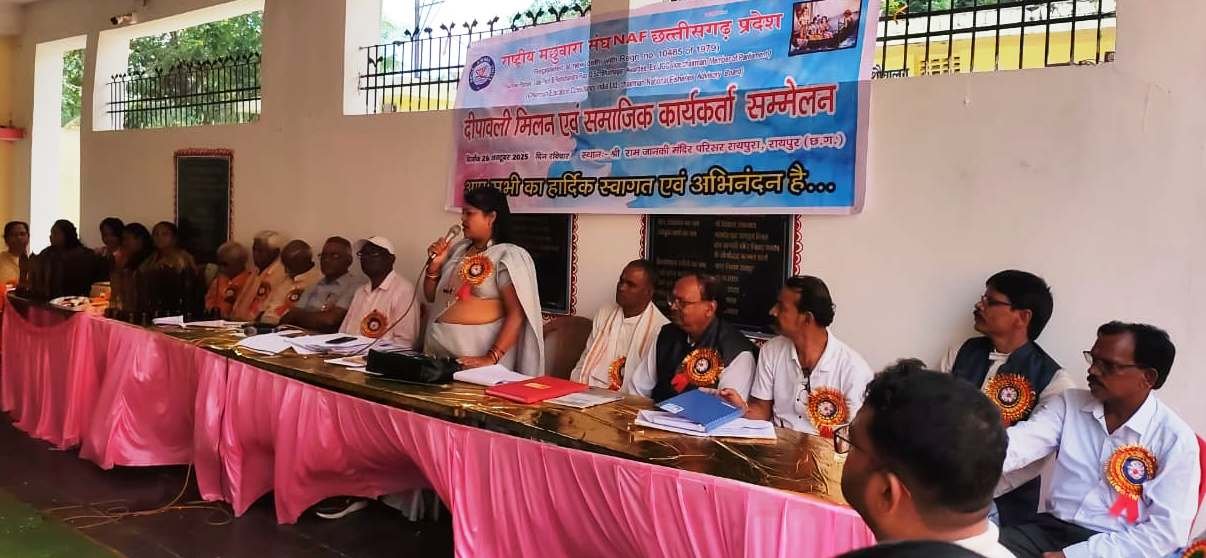 रायपुर/राष्ट्रीय मछुवारा संघ छत्तीसगढ़ प्रदेश द्वारा दीपावली मिलन एवं 5 अक्टूबर 2025 को रायपुर में आयोजित राष्ट्रीय मछुवारा जागरूकता सम्मेलन के लिए आर्थिक सहयोग करने वाले एवं सामाजिक गण का सम्मान किया गया। माननीय गायत्री गायग्वाल के अध्यक्षता में हुए राष्ट्रीय मछुवारा जागरूकता सम्मेलन के आयोजन का समीक्षा हुआ और संगठन का विस्तार प्रत्येक विधानसभा में करके मछुवारा समाज का पुनः जनगणना कर 2026, 2027 और आगे भी सम्मेलन करने की घोषणा किया। 5 अक्टूबर के आयोजन में आय व्यय का ब्यौरा संगठन के कोषाध्यक्ष बुधराम धीवर द्वारा समाज को दिया गया। गायत्री गायग्वाल जी द्वारा दीवाली की शुभकामनाएं देते हुए कार्यक्रम को सफल बनाने वाले सभी सामाजिक गण का आभार व्यक्ति किया।