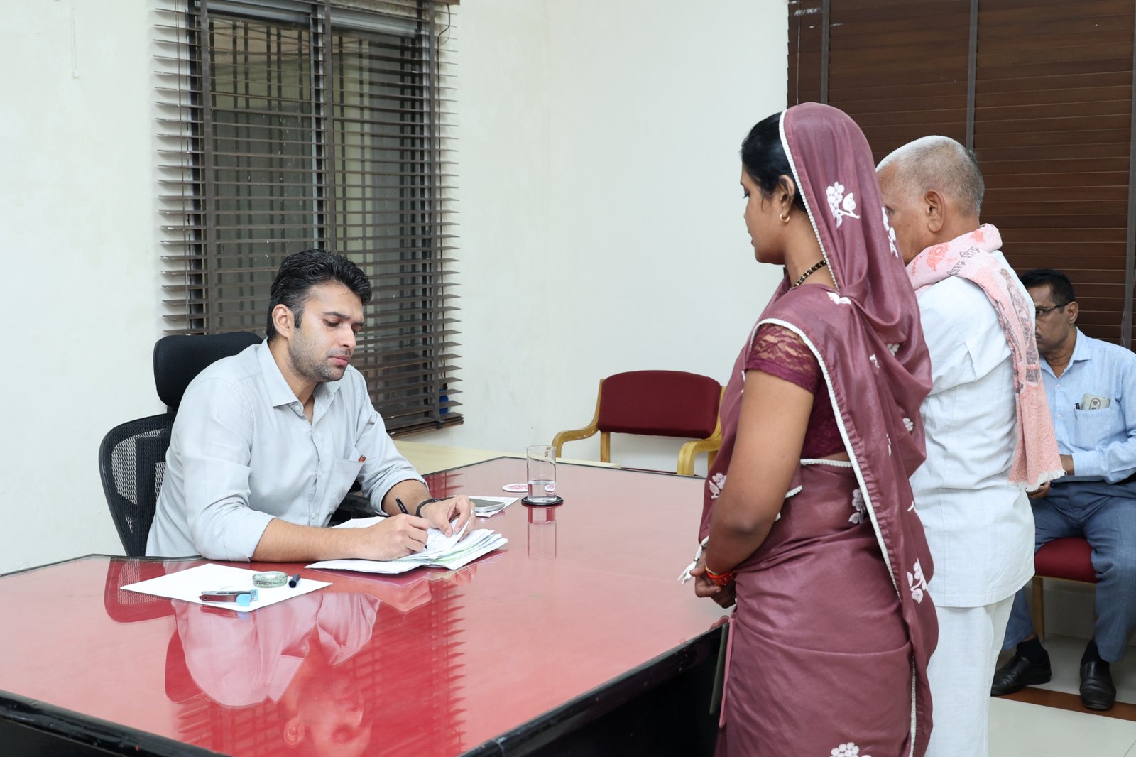 रायगढ़, 3 नवम्बर 2025/ जिला कलेक्टोरेट परिसर में आज आयोजित जनदर्शन कार्यक्रम में कलेक्टर मयंक चतुर्वेदी ने जिले के शहरी एवं ग्रामीण क्षेत्रों से पहुंचे आमजनों की समस्याएं, शिकायतें और मांगें सुनीं। उन्होंने प्रत्येक आवेदन पर संवेदनशीलता के साथ सुनवाई करते हुए संबंधित विभागों के अधिकारियों को नियमानुसार त्वरित एवं गुणवत्तापूर्ण निराकरण के निर्देश दिए। जनदर्शन में ग्राम पंचायत कोड़ातराई के ग्रामीणों