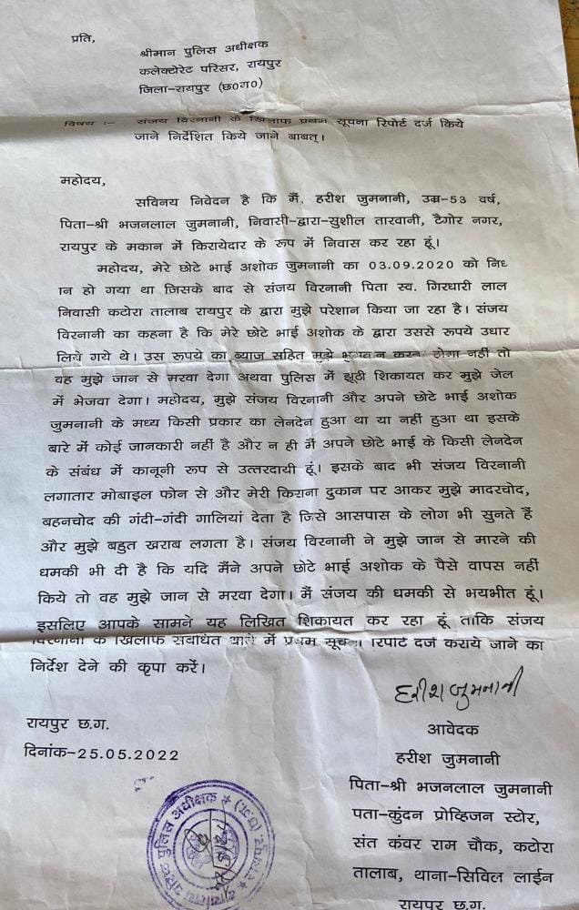 रायपुर:- प्रियदर्शिनी नगर निवासी 51 वर्षीय किराना कारोबारी हरीश कुमार जुमनानी ने गुरुवार ने शुक्रवार की रात अपने घर में...
