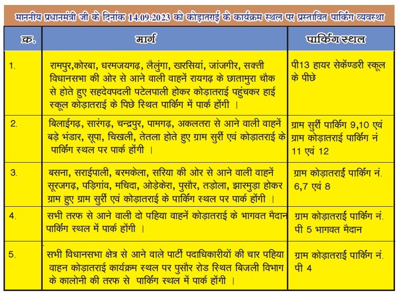 छत्तीसगढ़ टॉप न्यूज़ ! रायगढ़, 13 सितम्बर 2023/ प्रधानमंत्री श्री नरेन्द्र मोदी के 14 सितम्बर को रायगढ़ के कोड़ातराई में...
